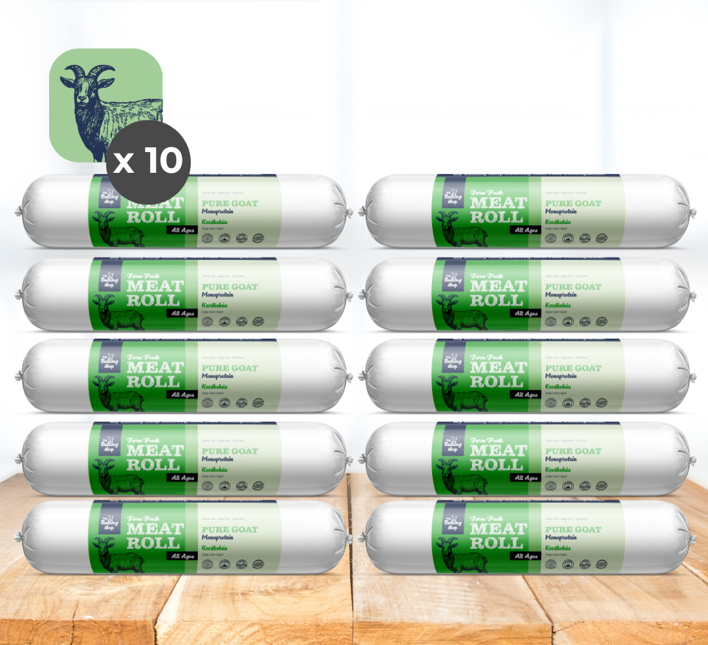 Die My Bulldog Meatroll Pure Goat ist eine besonders schmackhafte, leicht verdauliche Monoprotein-Nassnahrung auf Basis von Ziegenfleisch. Sie eignet sich vor allem für Hunde mit Futterunverträglichkeiten oder Allergien. Ziegenfleisch wird deutlich seltener gefüttert als gängige Proteinquellen und ist daher eine gute Option, wenn übliche Eiweißquellen wie Huhn oder Rind gemieden werden sollen.